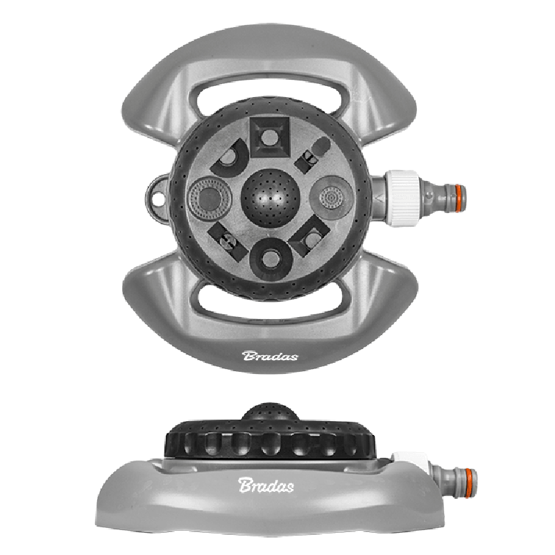 Статичний зрошувач розміщений на міцній пластиковій основі, яка забезпечує максимальну стійкість і не ушкоджує дерен. Його максимальна площа поливу становить 85 м2. Полікарбонат підвищеної міцності є основним матеріалом з якого виготовлений дожщувач. Оснащений стандартним з'єднанням для підключення шланга за допомогою конектора.